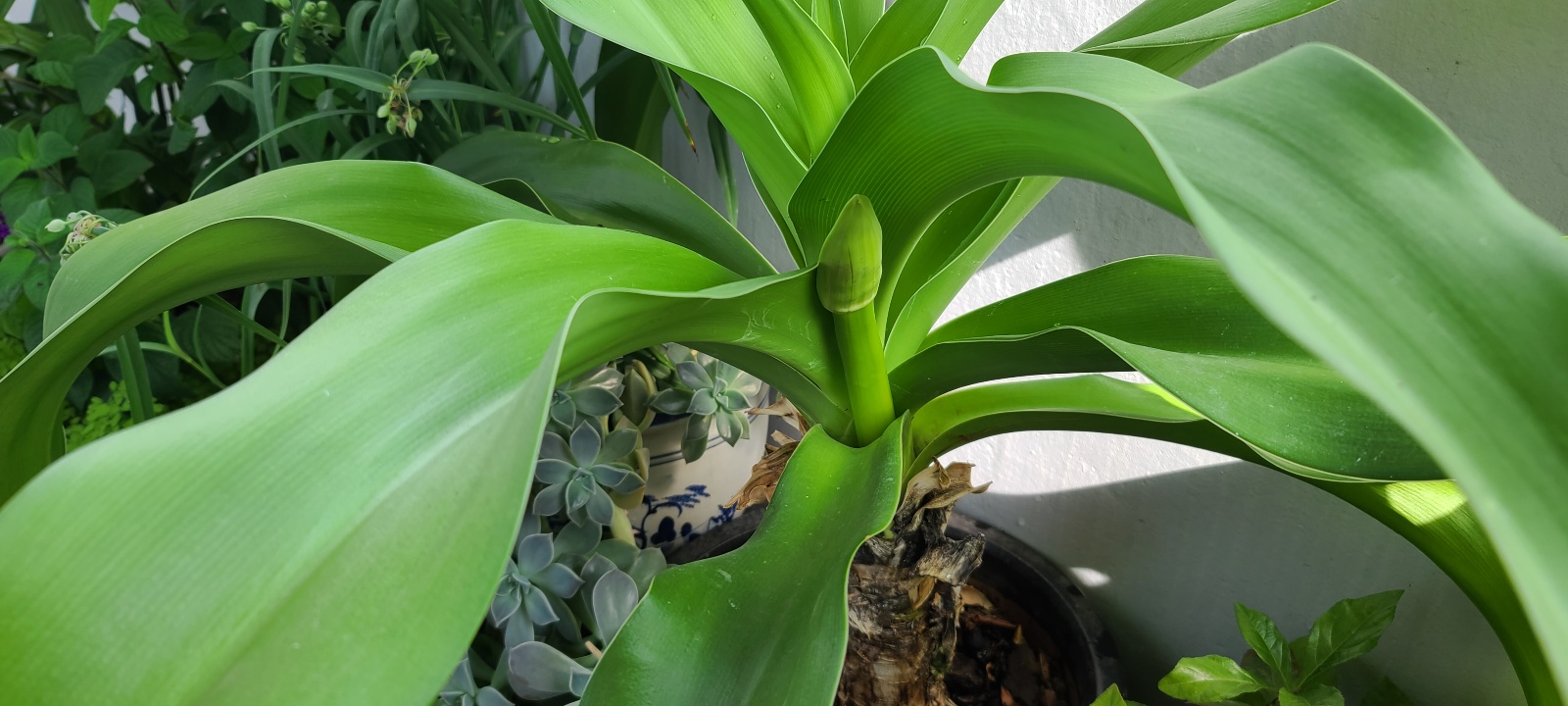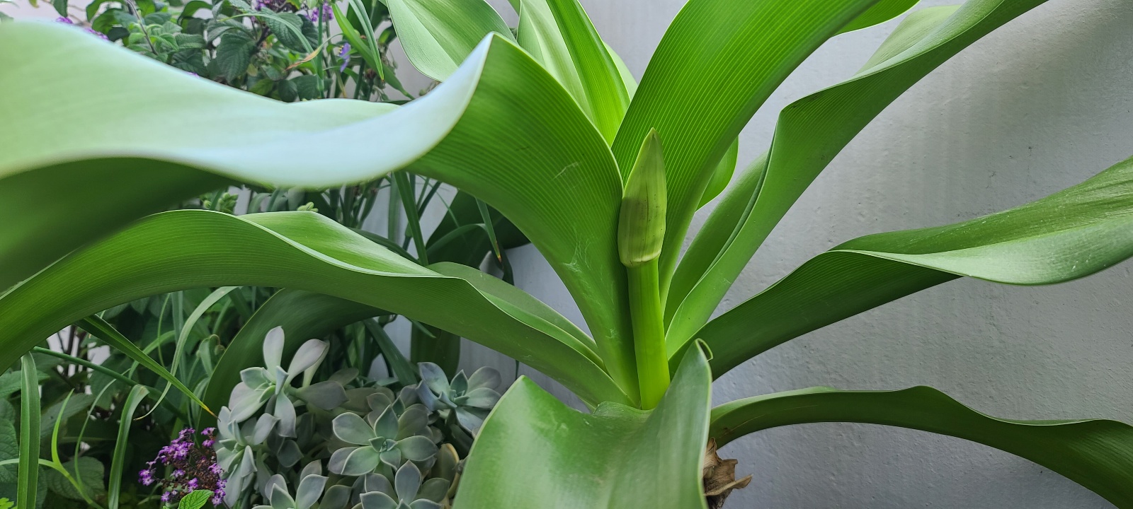 문주란 꽃대가 쏘옥 올라왔다.