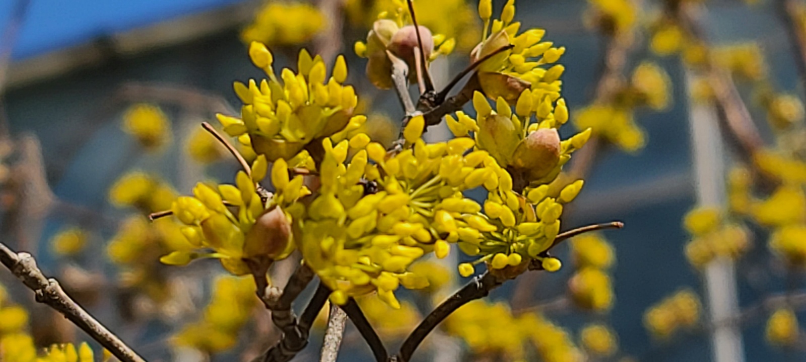 노란 산수유 꽃망울이 세상을