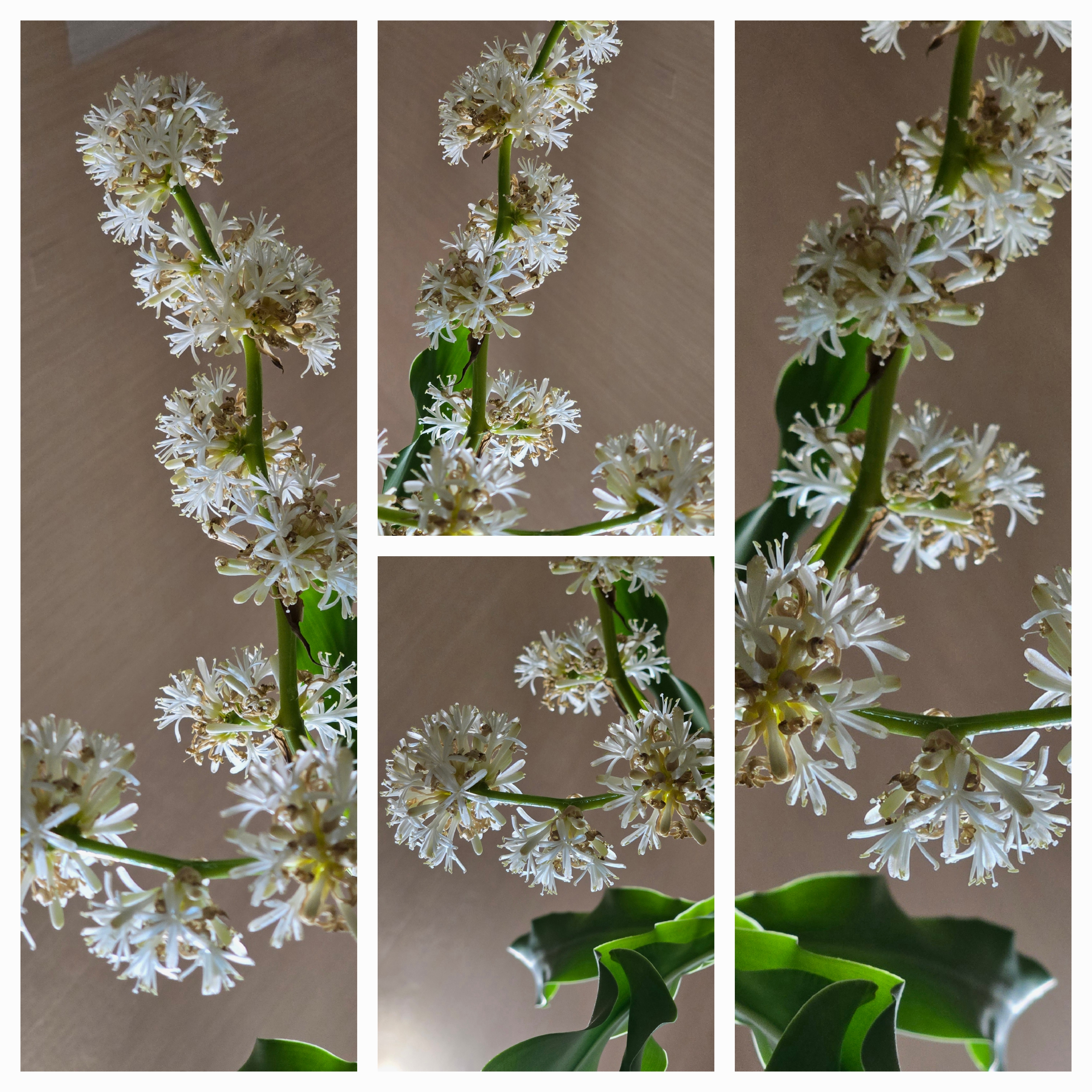 5/13. 행운꽃 6일차 해 지고, 밤이 깊어갈수록 향기를 더욱 진하게 품어내는 행운목 꽃,오늘 벌써 6일 차를 맞는다.벌써 피어야 할 송이보다 이미 핀 송이가 더 많으니 향기 품어내고 떠나는 데 약 일주일면 족한가 보다.여러 가지 모양 많이 만들어 낸 행운 꽃!그 향기에 취해서~~~감사합니다.2025. 05. 13. 화욜. ◈아름다운화원 2025.05.13