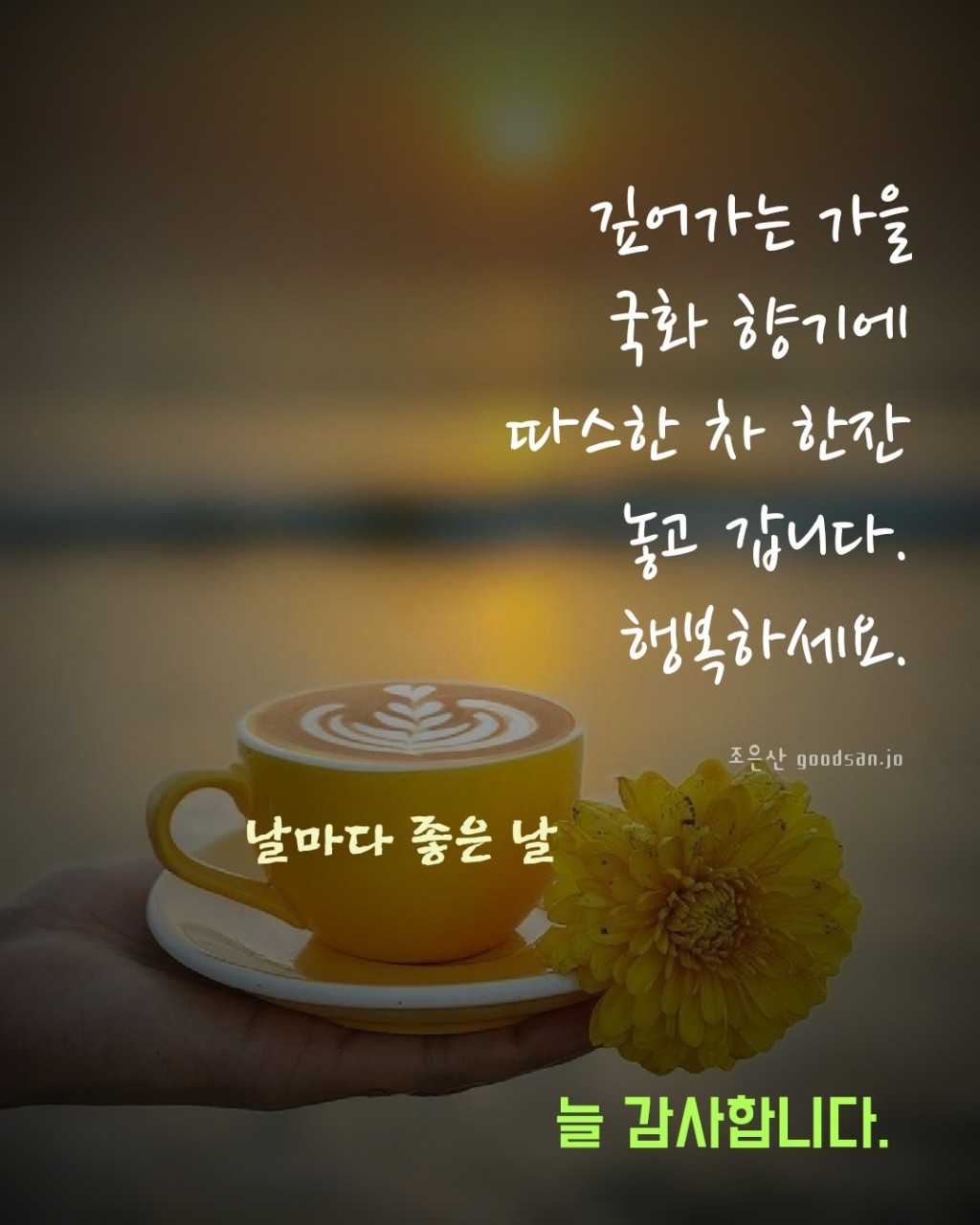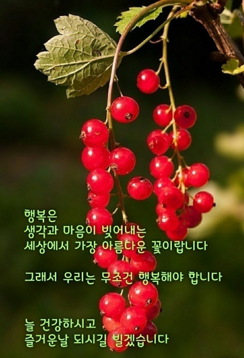 매일매일 행복하세요. 굿 모닝!! 친구 친구가 없으면 좋은 일이 있어도 기쁜 줄 모르고 친구가 없으면 좋은일이 있어도 나눌곳이 없다. 좋은 친구는 황야에서 솟아나는 샘물과 같다. 귀한 인연에 감사합니다. 아름다운 하루 풍성한 가을 되세요. 오늘의 유머 여자가 여행을 떠날때 전에는 곰국을 끓여 놓고 갔지만 현재는 싱크대에" 까 불 지 마"라고 써 놓고 간답니다. 명석한 남편들의 답변 "웃 기 지 마 라"라고 한답니다. 기온이 뚝 떨어졌어요 따습게 입고 감기 조심하세요. 사람이 사람에게 줄 수 있는 최고의 선물은 언제나 변함없는 마음입니다. 아침이 즐거우면 하루가 즐겁습니다. 오늘도 사랑과 행복 싣고 힘차게 출발합니다. 비우면 행복해집니다. 연잎은 감당할만한 빗방울만 싣고 그 이상이 되면 미련없이 비워 버린..