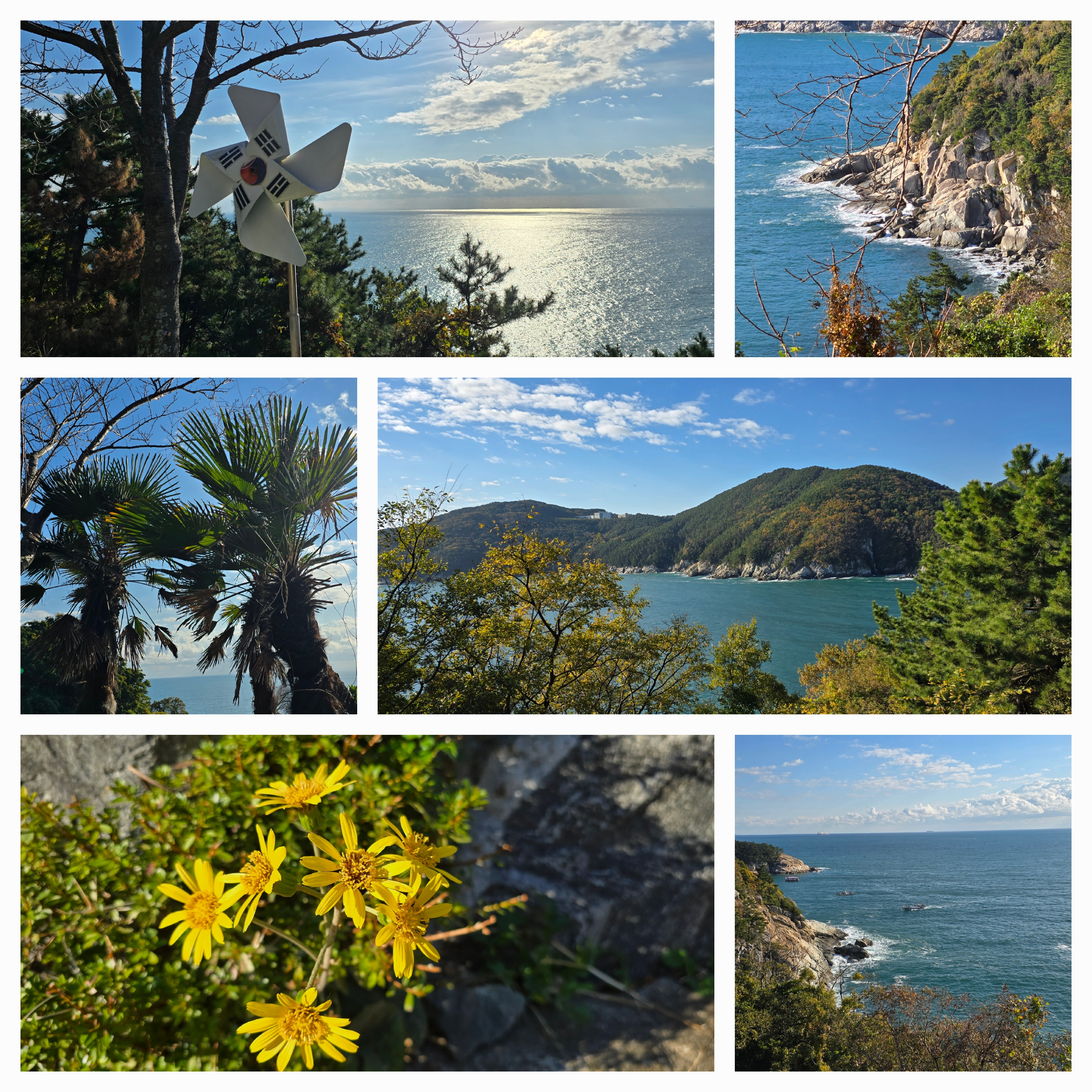 ♧ 양지암 조각공원에서 ~~ 거제어촌민속박물관까지♧ 어제 다녀온 길 이어서 포스팅!정말 걷기 좋고 날씨 좋고 공기 맑고,풍경들이 아름다웠던 거제에서의 추억!풍경들이 너무 멋지고 아름다워서 일단 묶음으로 꾸며보았다. 예쁘다.가운데 작은 섬이 지심도라 알려준다.저기 앞산에 흰색건물이 거제대학교.지금 걷는 이길로 삥 돌아서 저 산아래 해변을 거쳐 산속으로 약 3시간 정도 걸어가면지세포 옥화길에 도착한다. 그 뒷산에 거제대학이 있다.아래사진 산 중턱의 길로 장승포동 마을을 삥 돌아 동백섬 지심도 터미널, 장승포주민센터 앞으로 진행해서그 반대쪽에서 걸어온 방향 돌아본다.도보여행 오늘 코스 종점을 향해 다시 산으로 진입하는 가파른 계단이 기다리고 있다.계단을 오르면 다시 바다를 조망할 수 있는 전망 좋은 정자쉼터가..