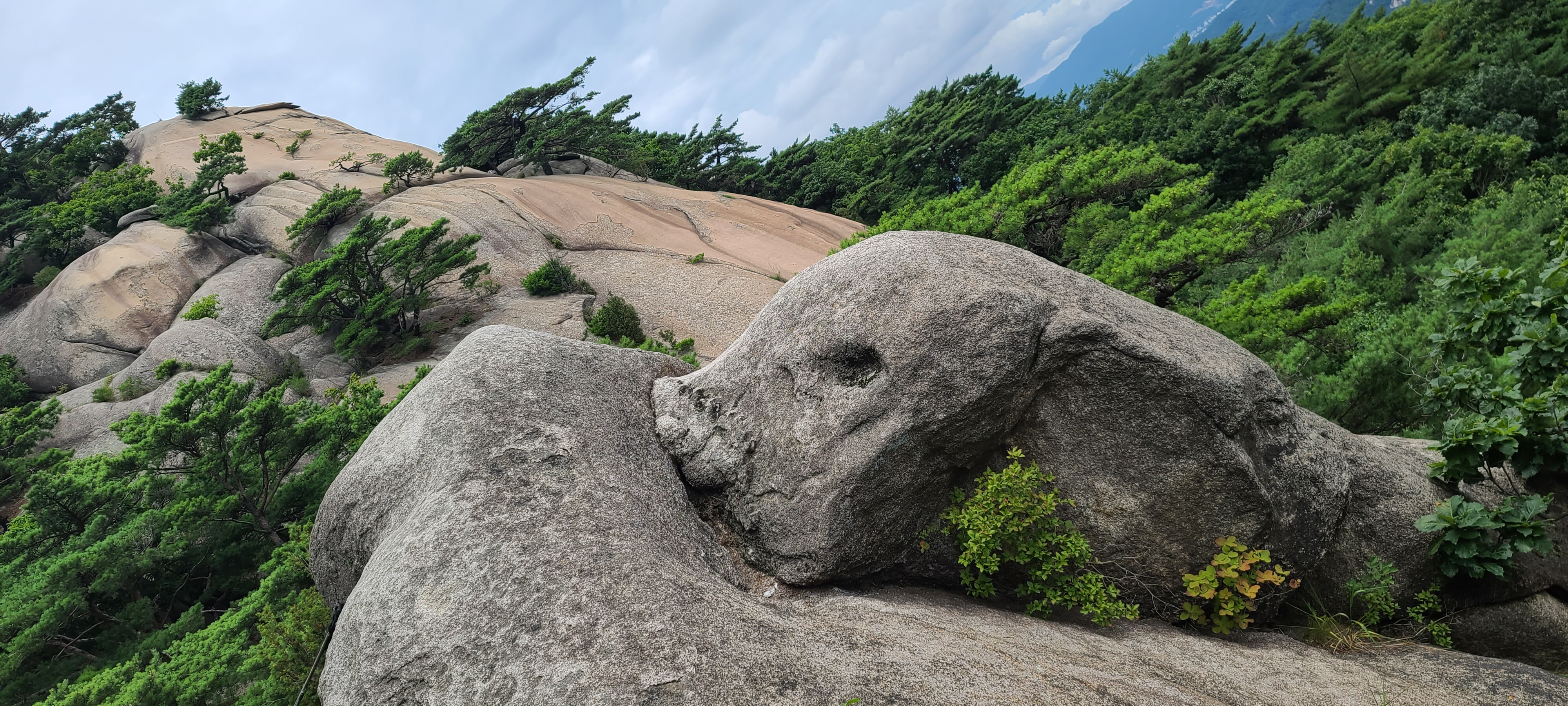 ◆ 일상으로 변환 된 산책. ◆ 오늘은 노원 어린이 도서관 앞에서 둘레길 접선 불암정에서 경수사로 작게 한바퀴 ! ◆ 사진 순서 없슴. 제 멋대로 멈추고 싶은곳에 자유자재함. 내 눈을 의심할만큼 빨갛게 물든 단풍 불암산 경수사 내에 시원한 폭포. 작년 장마때 만큼은 아니어도 요즘처럼 폭염에 열마나 위안이 되던지. ... 불암산 경수사 마당끝 커다란 함지박에 연꽃의 세상! 불암정을 오르는데 저 바위 고개를 살짝 내밀어 이 더위에 여긴 웬일이냐고 묻는거 같다.ㅎㅎ 경수사 내 배롱나무와 불암폭포. 멋진 그리고 아름다운 폭포를 곁에 두고 있는 경수사의 작은 법당들. ... 불암산책길 어느교회 마당끝에 수련. 오가며 눈에 띄면 참 예쁘다. 연밥이 있는 경수사 경내. ... 노원 어린이도서관 앞을 지나 산책을 시작..